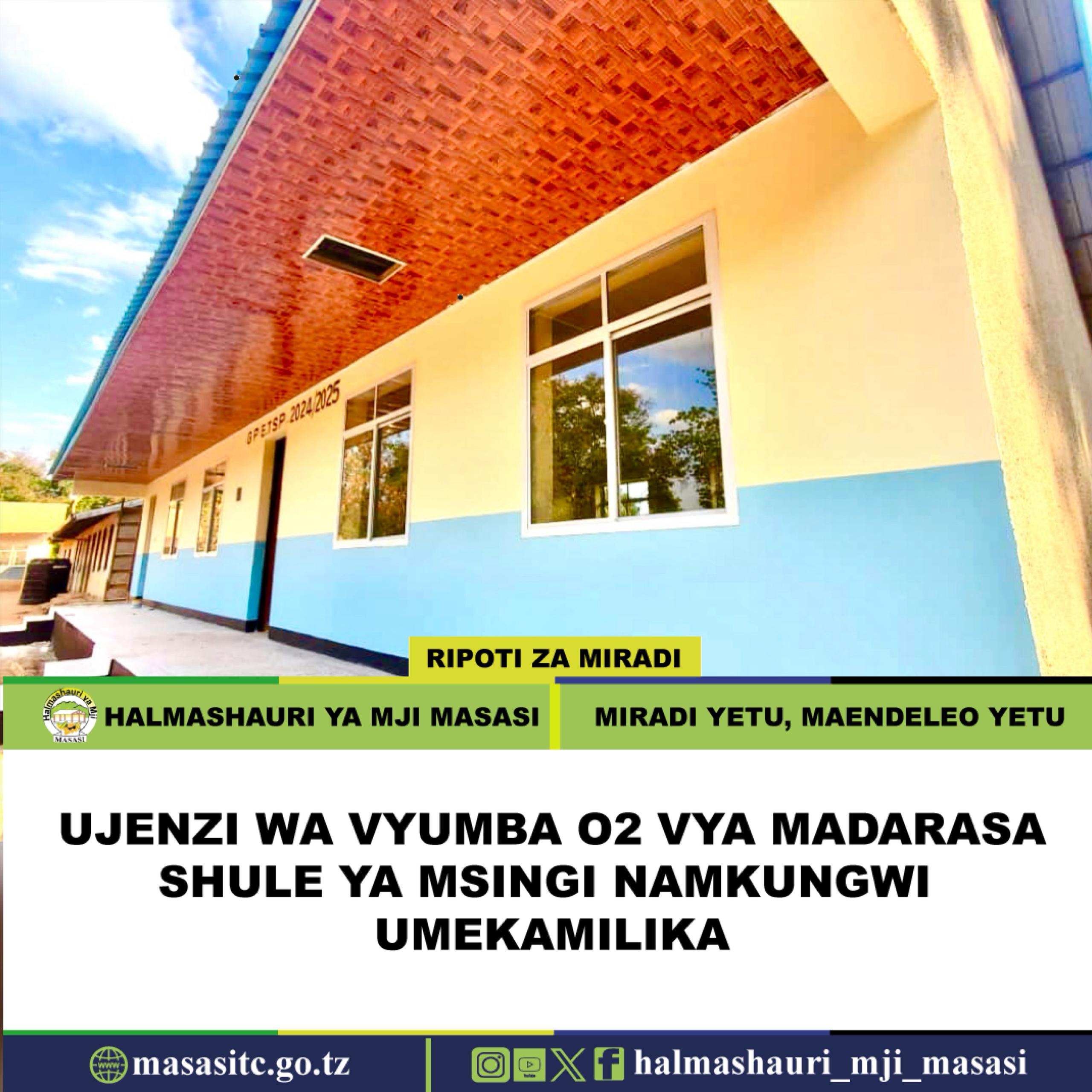 Halmashauri ya Mji Masasi mkoani Mtwara imekamilisha Ujenzi wa vyumba viwili vya madarasa shule ya msingi Namkungwi kata ya Mwengemtapika iliyopokea fedha kiasi cha shilingi milioni 48 kutoka GPE Lanes.