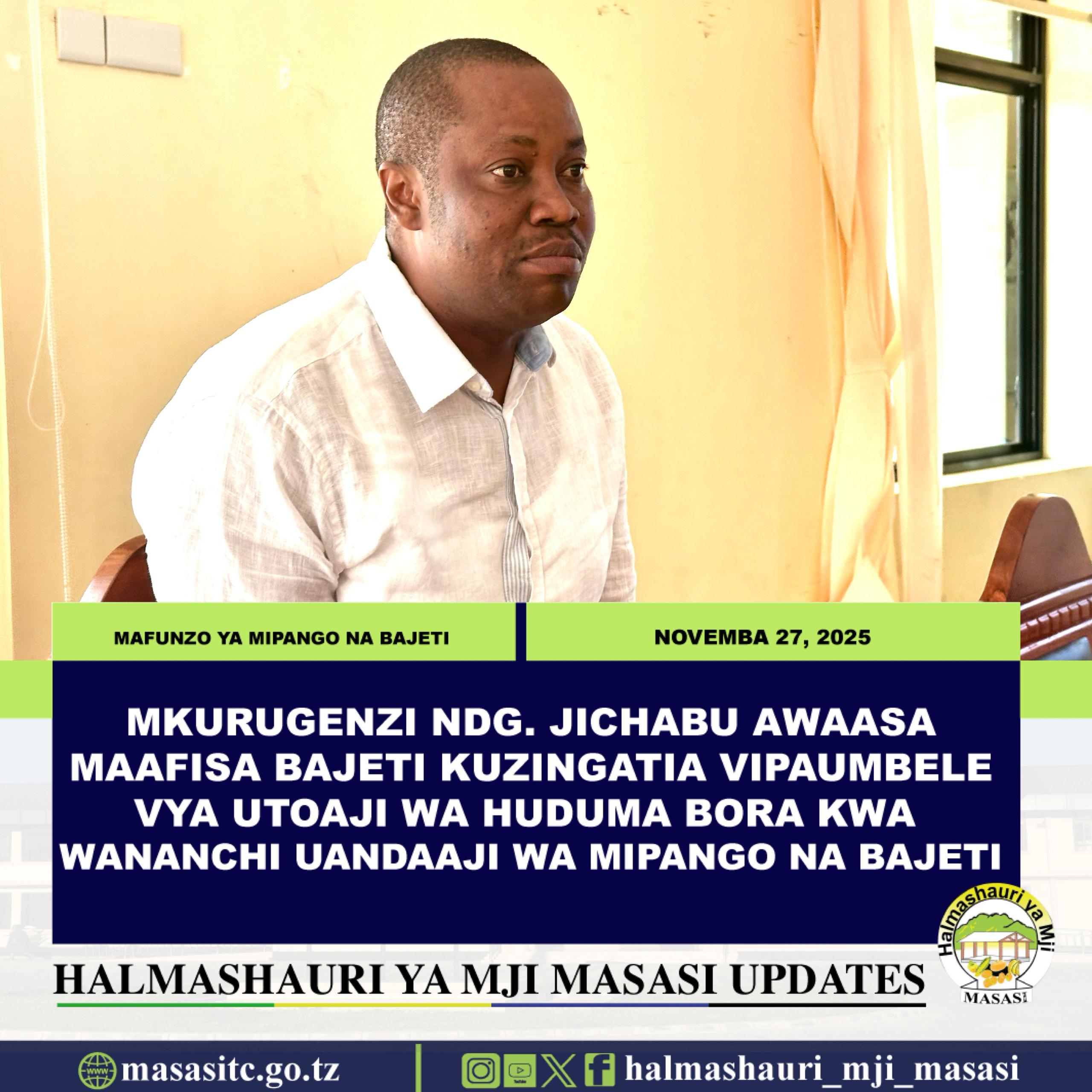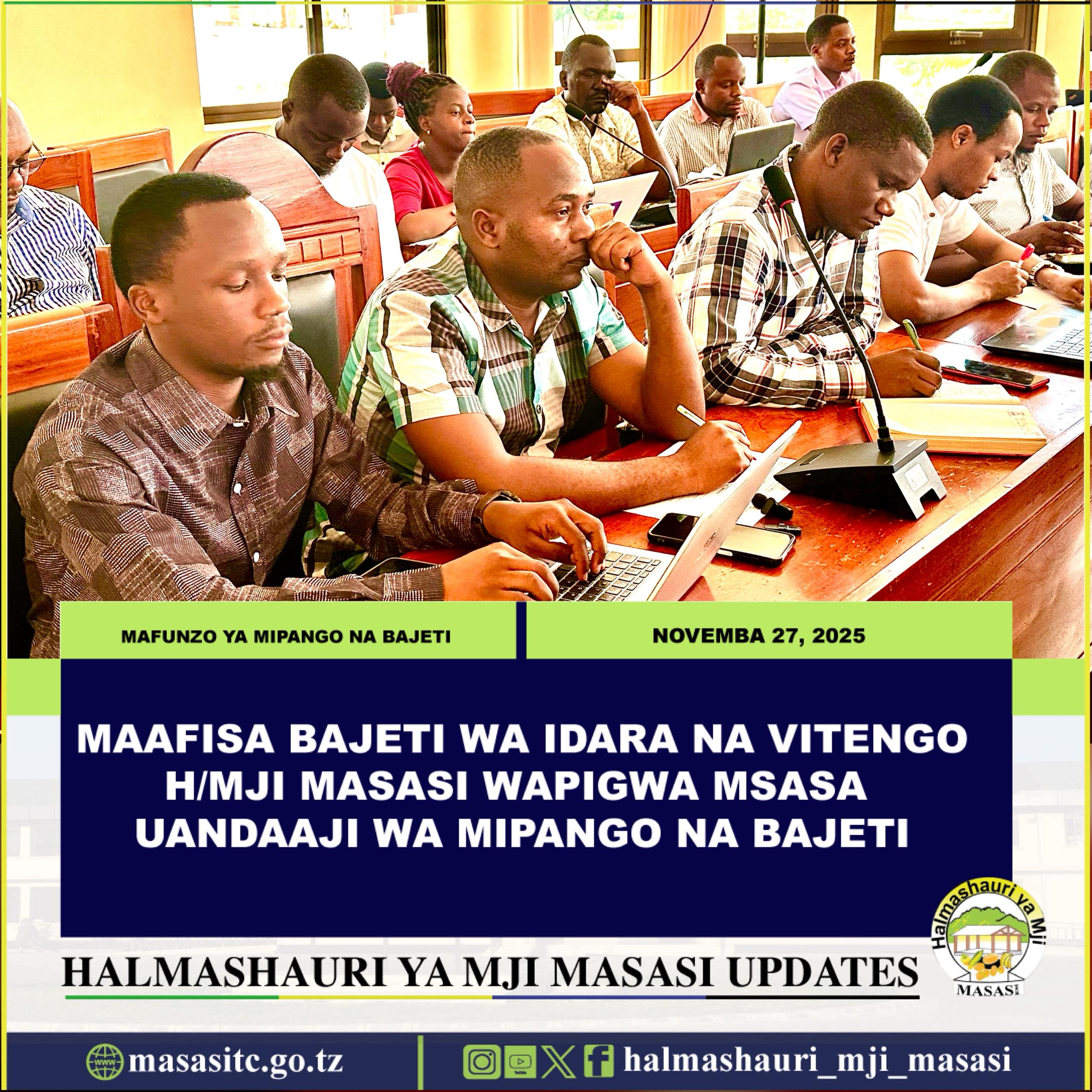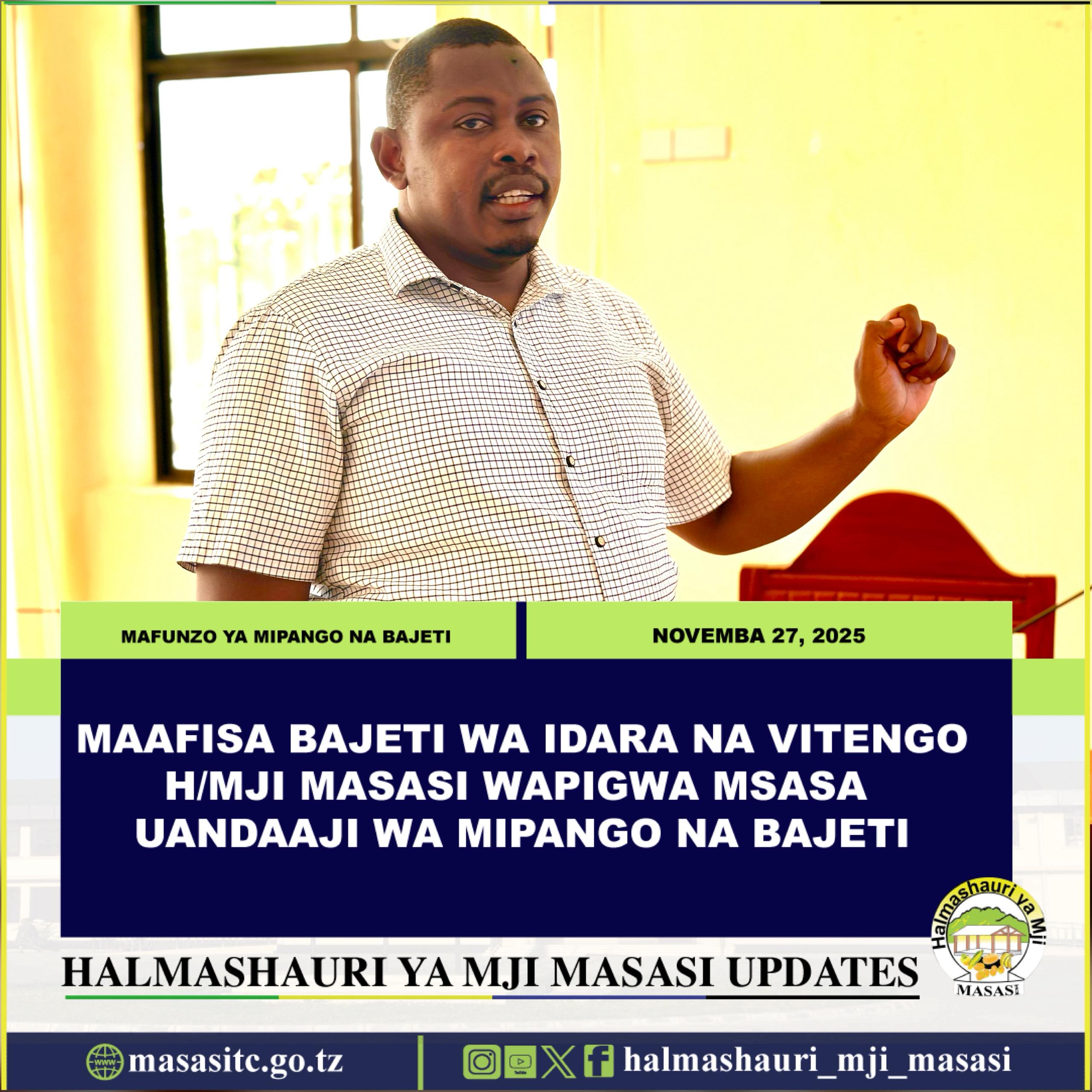 Mkurugenzi wa Halmashauri ya Mji Masasi Ndg. Reuben Sixbert Jichabu amewaasa Maafisa Bajeti kuhakikisha wanazingatia vipaumbele na uhalisia katika maandalizi ya bajeti ili kuboresha utekelezaji wa miradi na utoaji wa huduma bora kwa wananchi kwa ufanisi.