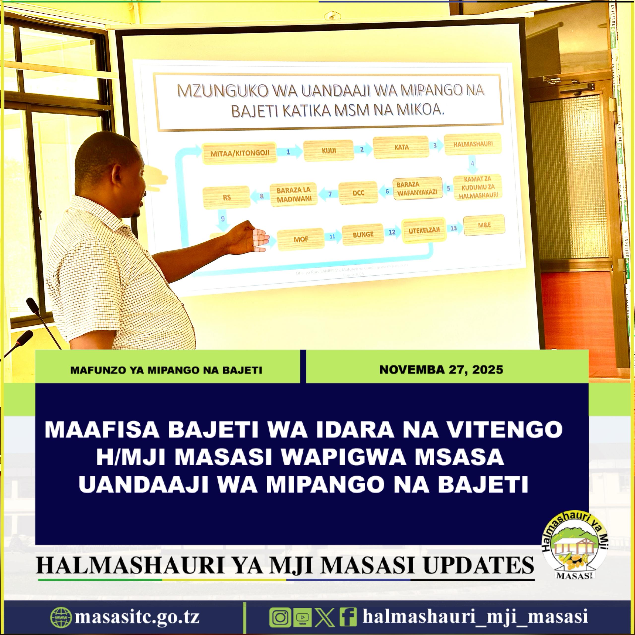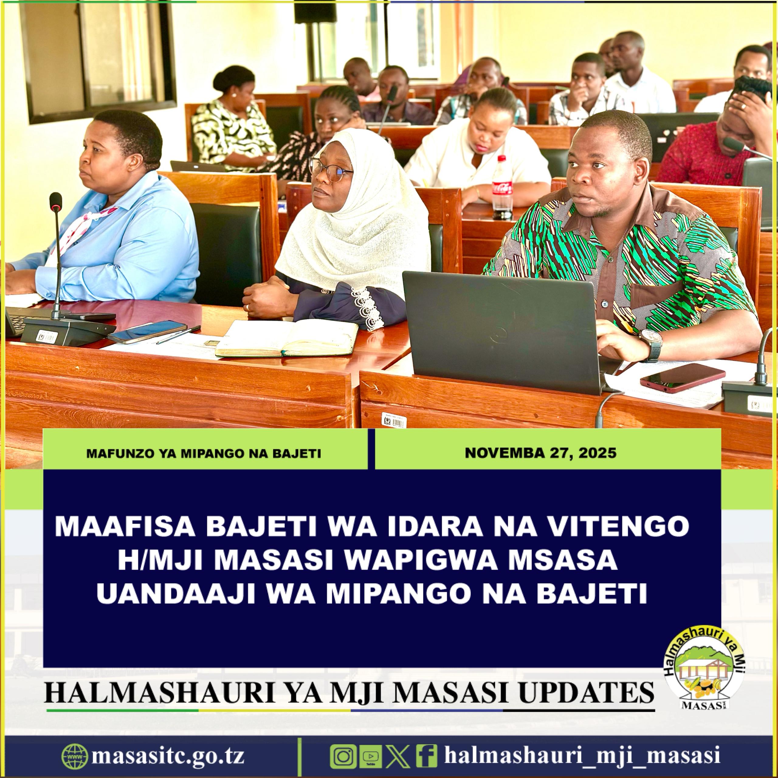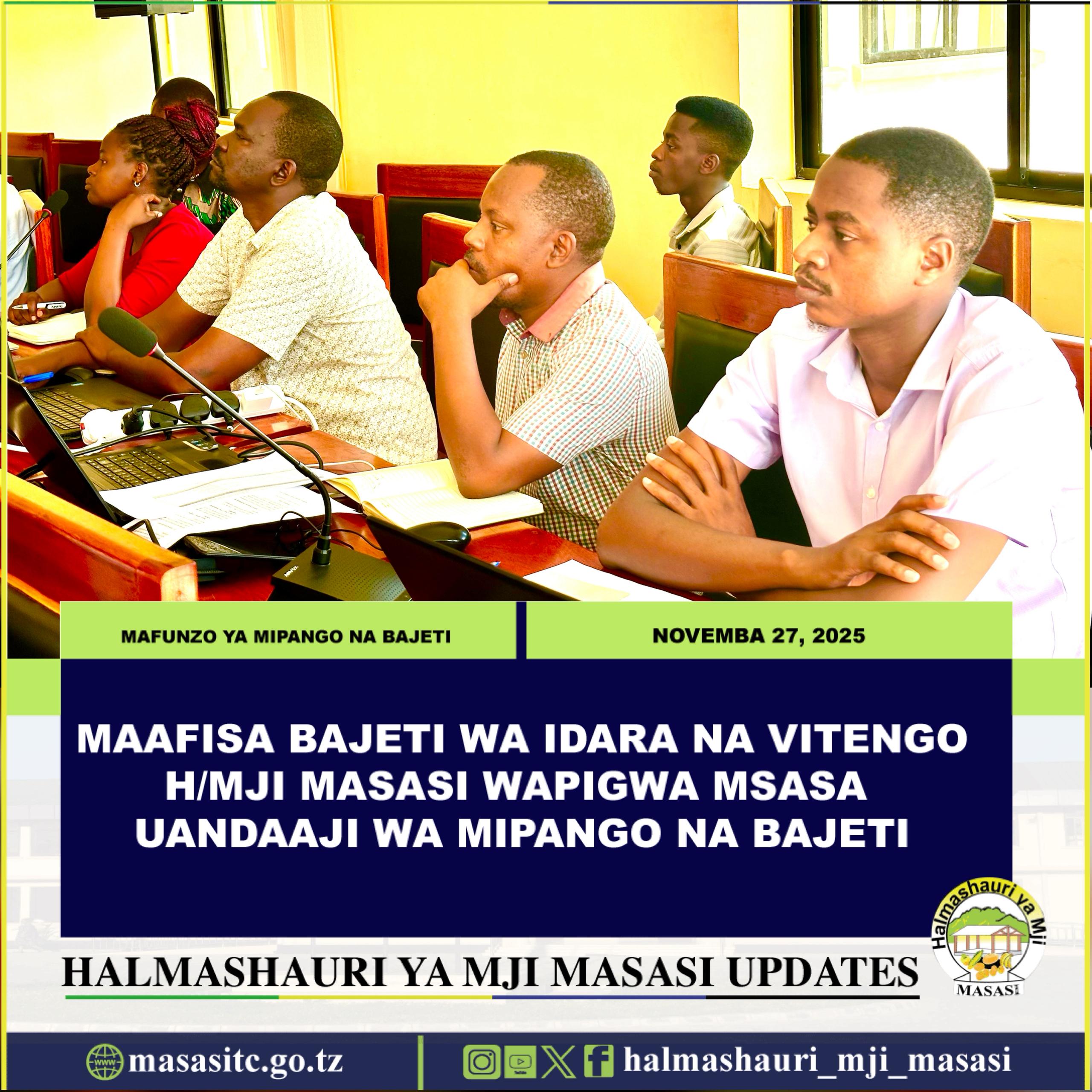 Mkurugenzi wa Halmashauri ya Mji Masasi Ndg. Reuben Sixbert Jichabu amewaasa Maafisa Bajeti kuhakikisha wanazingatia vipaumbele na uhalisia katika maandalizi ya bajeti ili kuboresha utekelezaji wa miradi na utoaji wa huduma bora kwa wananchi kwa ufanisi.